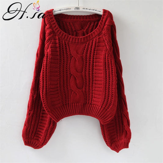 H.SA Roupas femininas Women Pull Sweaters 2020 New Yellow Sweater Jumpers Candy Color Harajuku Chic Short Sweater Twisted Pull