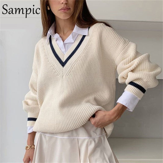 Sampic Winter Women Korean Preppy Style Knitted Basic Sweater Pullover Long Sleeve Beige Casual Sweater Jumpers Tops Outerwear
